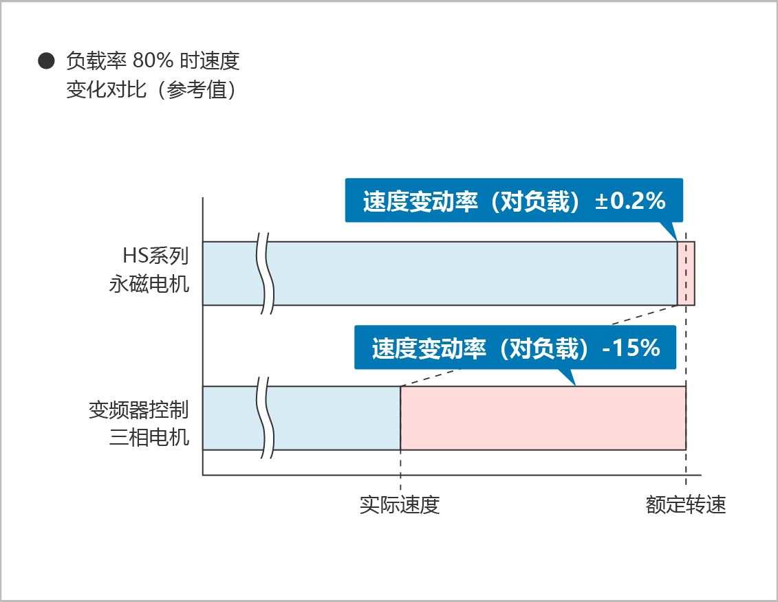 負載變化下的速度穩定HS系列永磁電機采用同步驅動技術,因此在面對負載變化的場合,仍能以穩定速度運行。